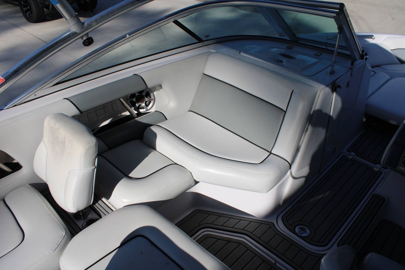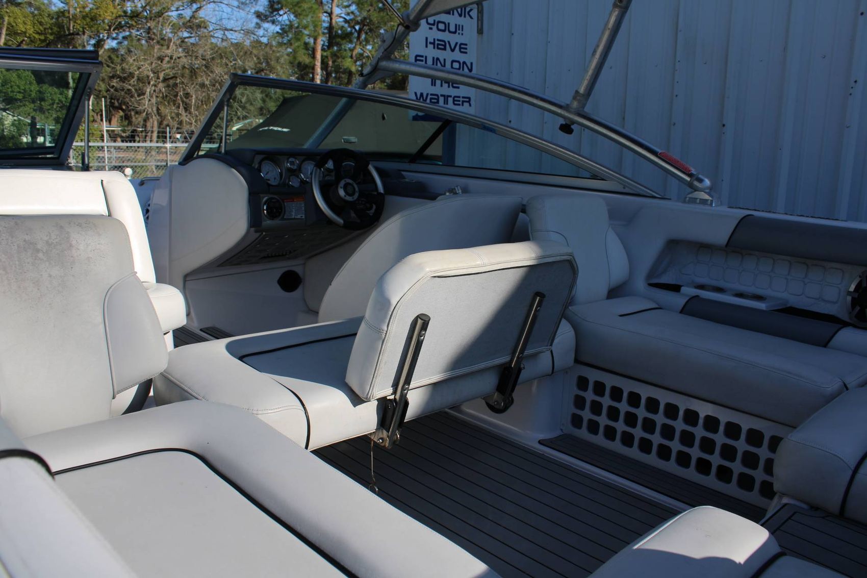 Interior in Good shape -complete SeaDec floor and transom kit, trailer is Brand New Boatmate paint over galvanized SS brake lines swing tongue, Brand New PCM complete Engine trans, and Vdrive. Full factory ballast system zero off cruise upgrade. Gauge kit upgrade.